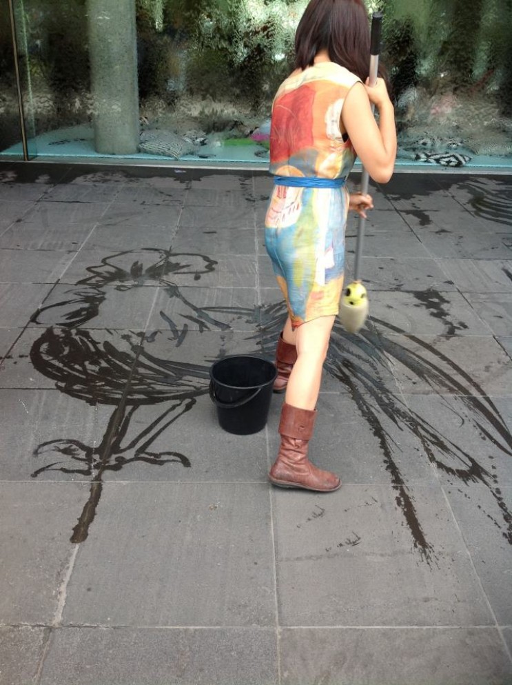 A demonstration of Chinese water calligraphy to celebrate the Chinese New Year.
