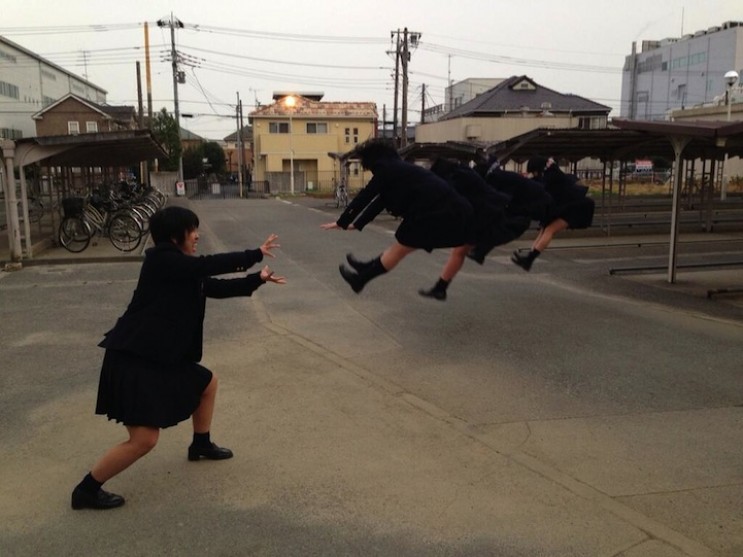 There is a massive internet photo trend brewing amongst youths in Japan right now that involves taking pictures of teens who appear to be releasing invisible energy that sends their peers flying. The photo mania is especially popular amongst schoolgirls who started the trend by uploading images on Twitter and labeling them as "Makankosappo", a reference to a special attack in the popular manga-turned-anime Dragon Ball series.