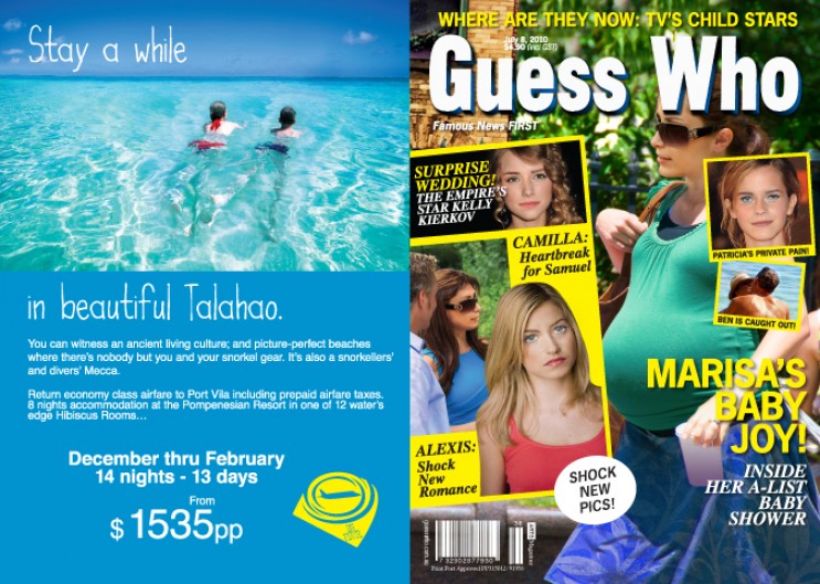For this 'Happy Banking' TVC for Bankwest we created a magazine hand prop in the vein of popular women's magazines. The masthead, imagery, names, headlines, stories and advertising were created to give the obviously fictitious cover onscreen legitimacy in this 30 second spot. We worked with Plaza Films on this project.