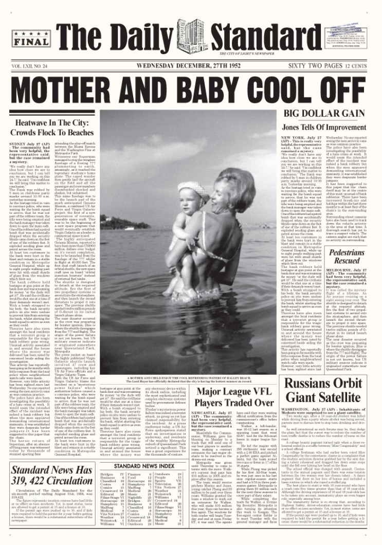 On The Commonwealth BankĀ 'Centenary' TVC, we produced various set dressing and props graphics. These included a '30s "Bradman Era" cricket scoreboard, an Australia II yacht replica, '50s newspaper and numberplates, and a school room chalk board. We worked with Goodoil Films on this project.